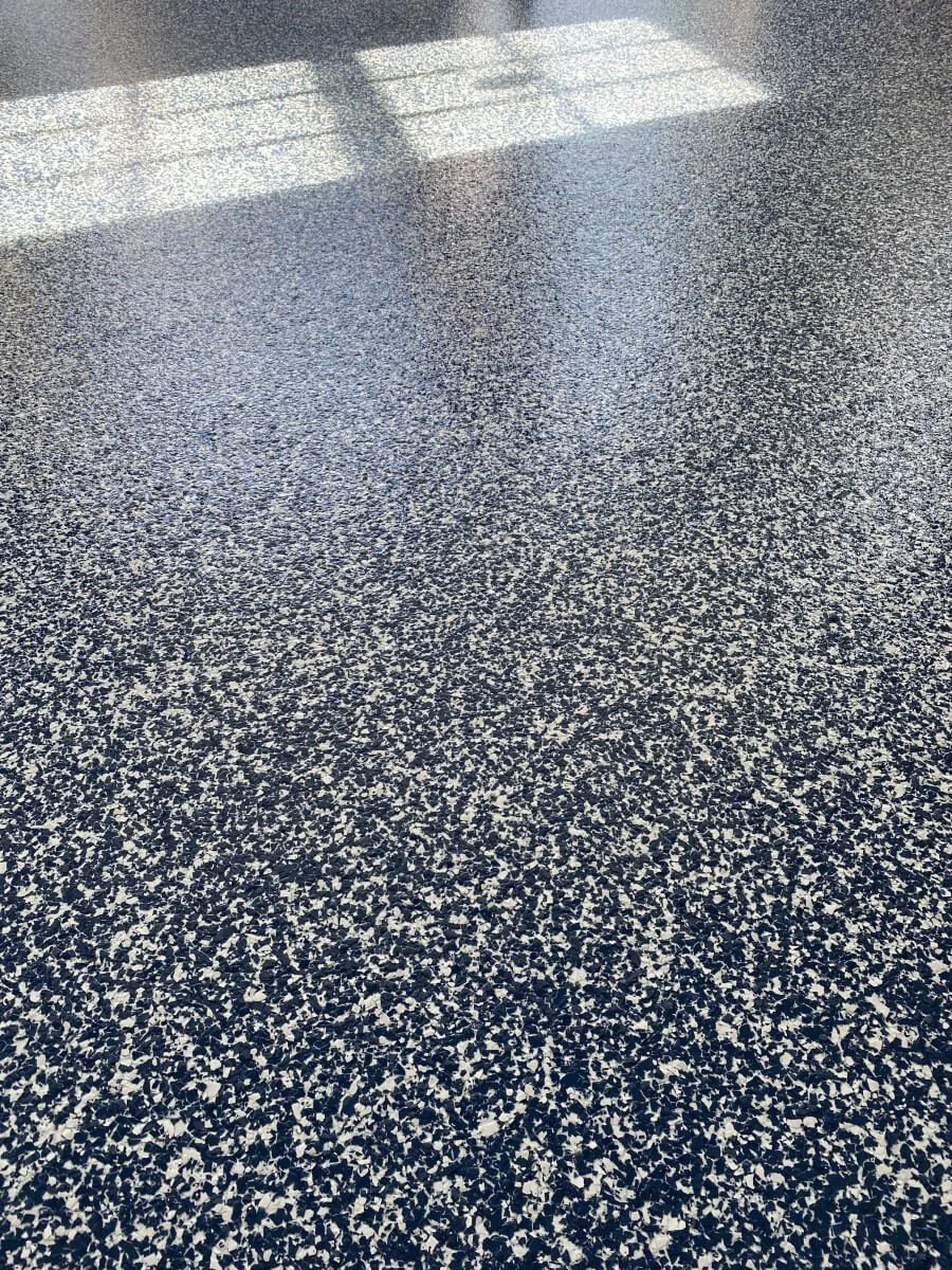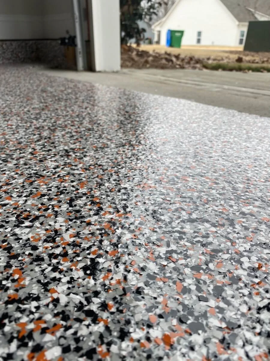 Like all epoxy coatings, flake flooring is incredibly durable. It resists stains, chemicals, impacts, and abrasions, making it ideal for high-traffic areas like garages, warehouses, and commercial spaces.Slip Resistance: