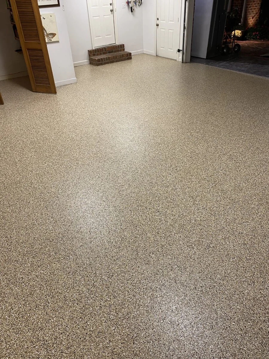 Flake flooring allows you to create a unique look by choosing from a wide variety of flake colors, sizes, and densities. Whether you want a subtle, speckled effect or a bold, colorful design, we can tailor the floor to match your style and decor.Durability and Strength: