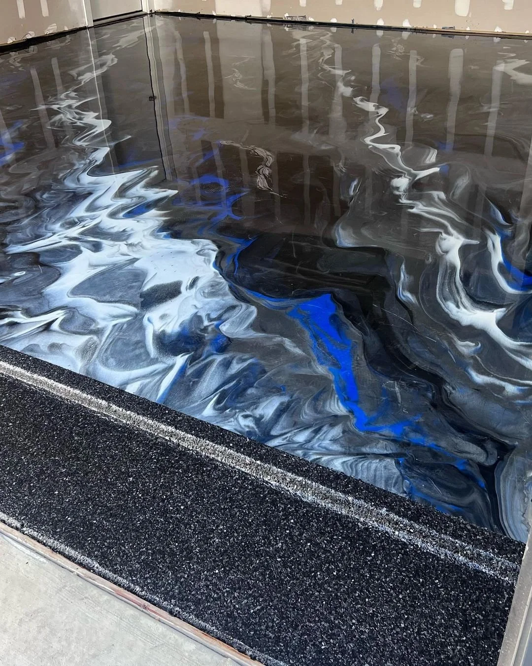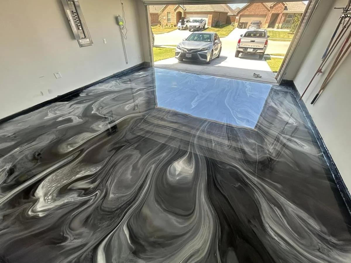 Transform your home with the stunning elegance of metallic epoxy flooring. Our two-part metallic epoxy system creates a unique, high-gloss finish that mimics the look of flowing metal or marble, adding a luxurious touch to any space.