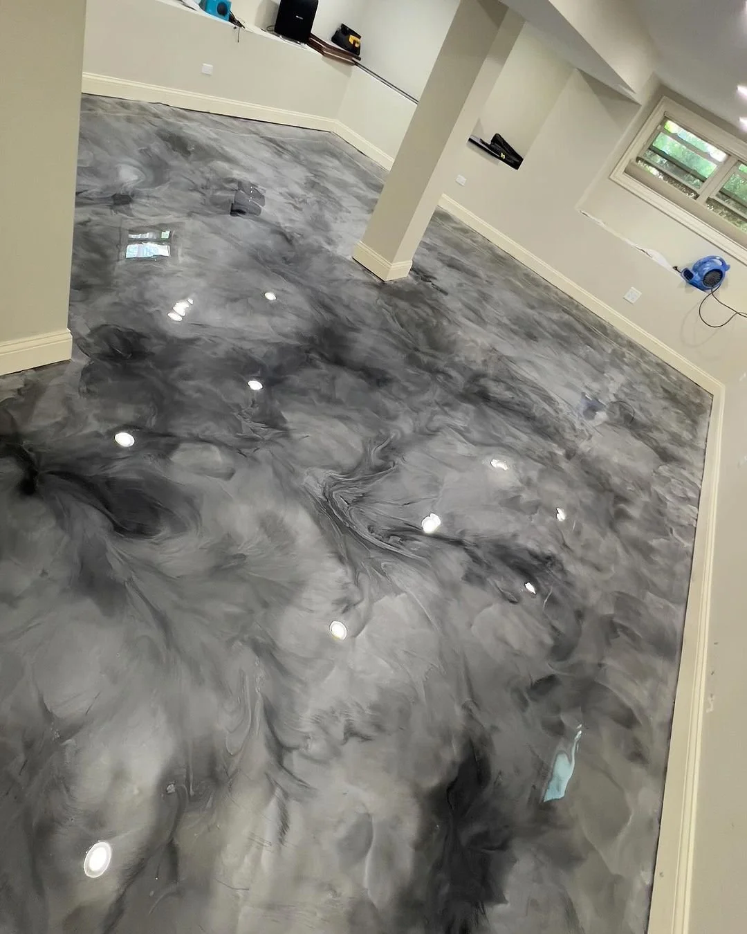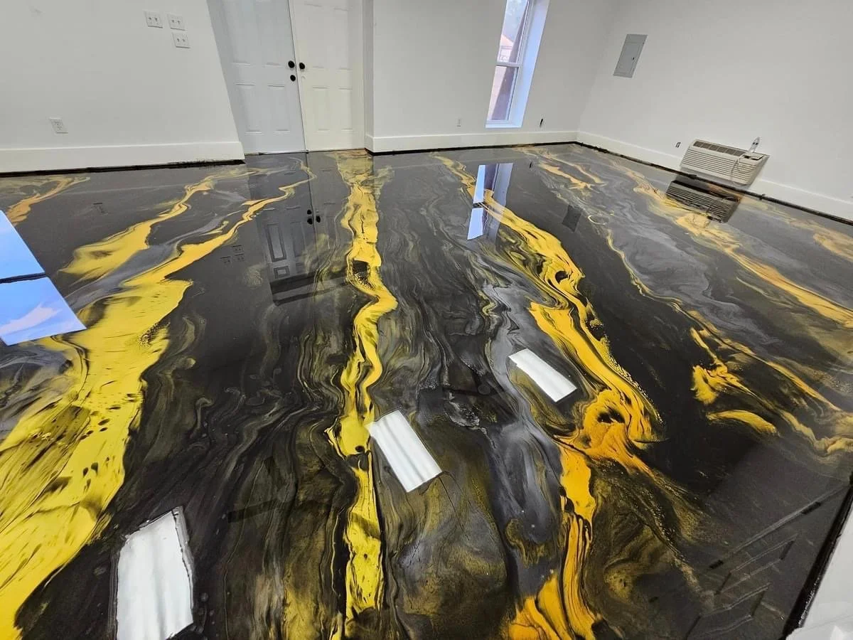 Metallic epoxy creates a mesmerizing, three-dimensional look with swirls and patterns that mimic natural stone, marble, or even a galaxy effect. No two floors are exactly alike, giving your space a one-of-a-kind finish.Durability: