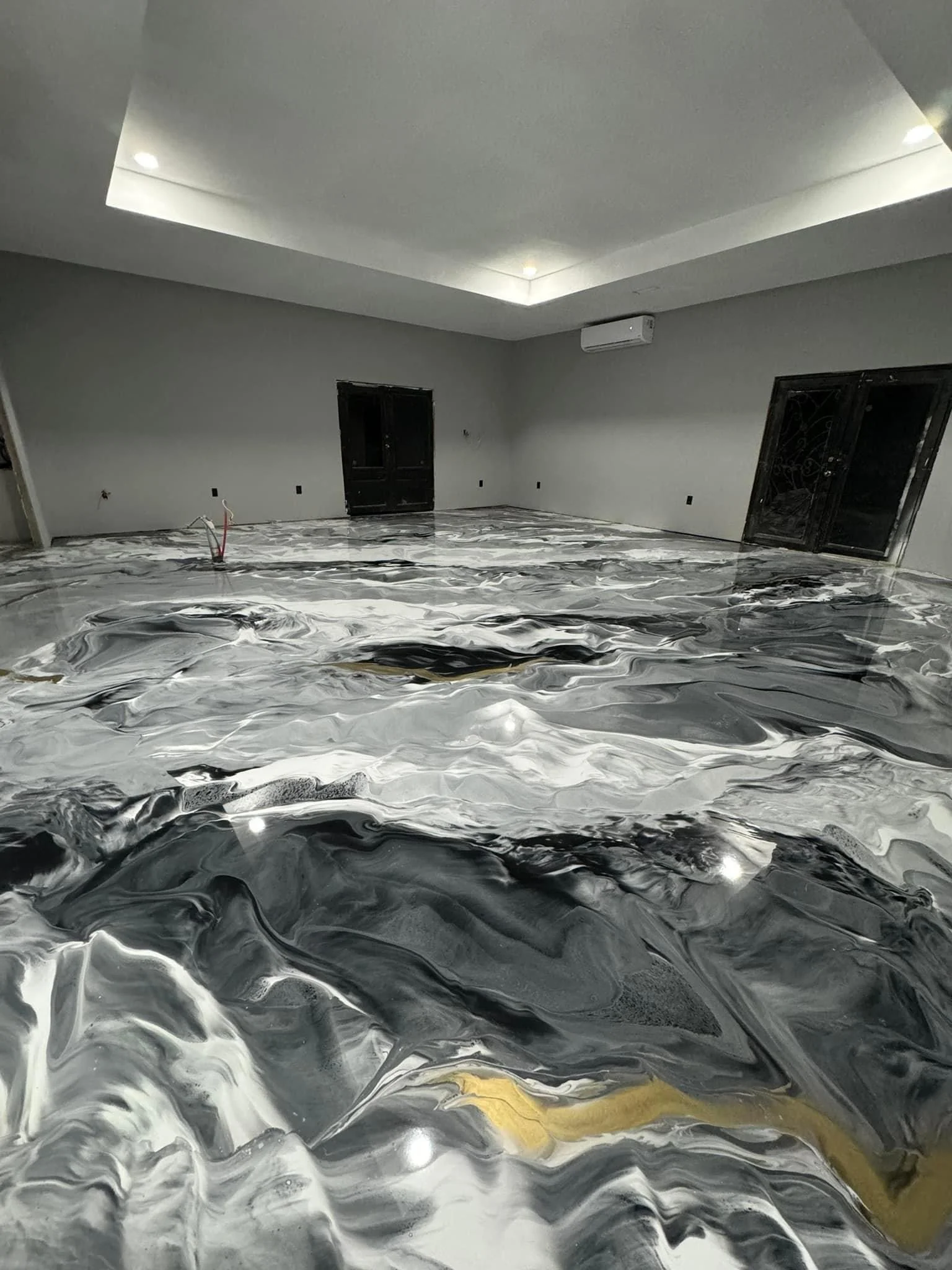For businesses that need durable, eye-catching flooring with a touch of elegance, our metallic epoxy system is the perfect solution. This two-part system creates a high-gloss finish that adds sophistication and a custom, high-end look to your commercial space.